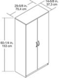 Made of laminated mdf and particleboard, the water resistant white finish can easily be wiped clean with a damp cloth. System build kathy irelandâ® home by bush furniture bush furniture bush business furniture ameriwood regency 0 2 3 6 not assembled laminated wood particle board gray/silver natural kraft white storage cabinets wall cabinets Features four doors, four adjustable shelves and one drawer. Systembuild 35.7w x 15.4d x 74.3h utility storage cabinet, white. Solid 5/8 (1.59 cm) construction.